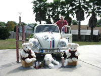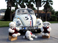 In the beginning, Beauregard and Daisy just kind of tagged along when Herbie went places. But in August of 2001, we decided to bring them to life and make them a permanent part of Herbie's display. In order to do this, the bears had to be animated and Herbie's brain was updated to a laptop computer running a 1.8GHz Pentium processor to control every movement. The original brain was replaced with a servo controller assembly that plugged into the same electrical harness. Everything else basically stayed the same. Oh, I almost forgot Duke; Bo and Daisy's dog...