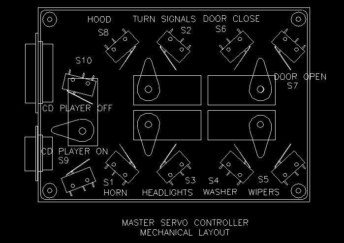 The original master controller was replaced with a master servo assembly that is controlled by the laptop computer.  Like before, it's output controls Herbie's movements.